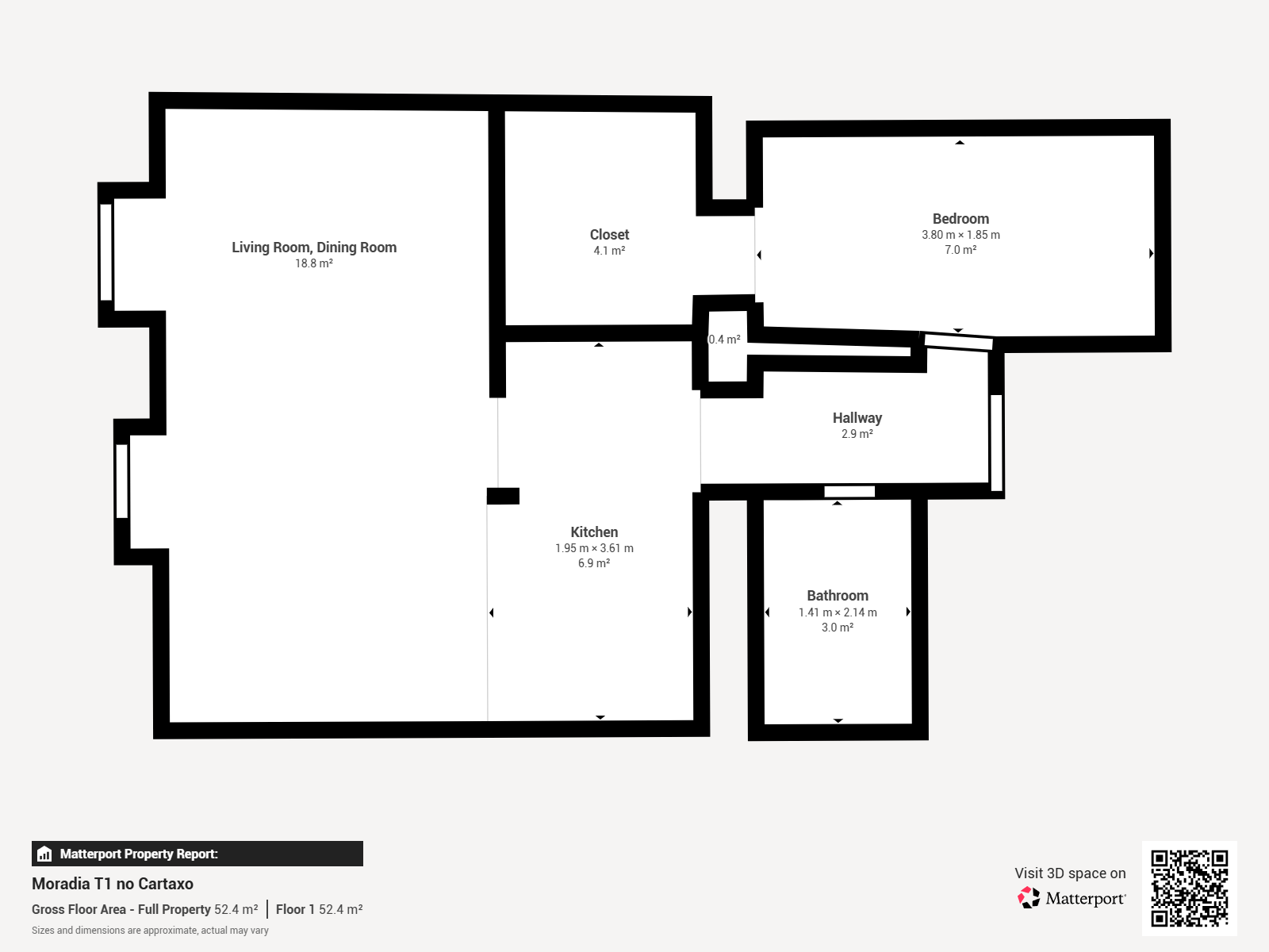 Composed of living room and kitchen (equipped with stove, extractor fan and fridge); bedroom with closet and full bathroom.